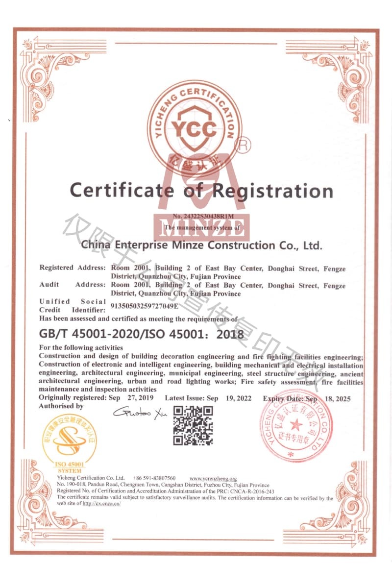 職業(yè)健康安全管理體系認(rèn)證證書(英)
