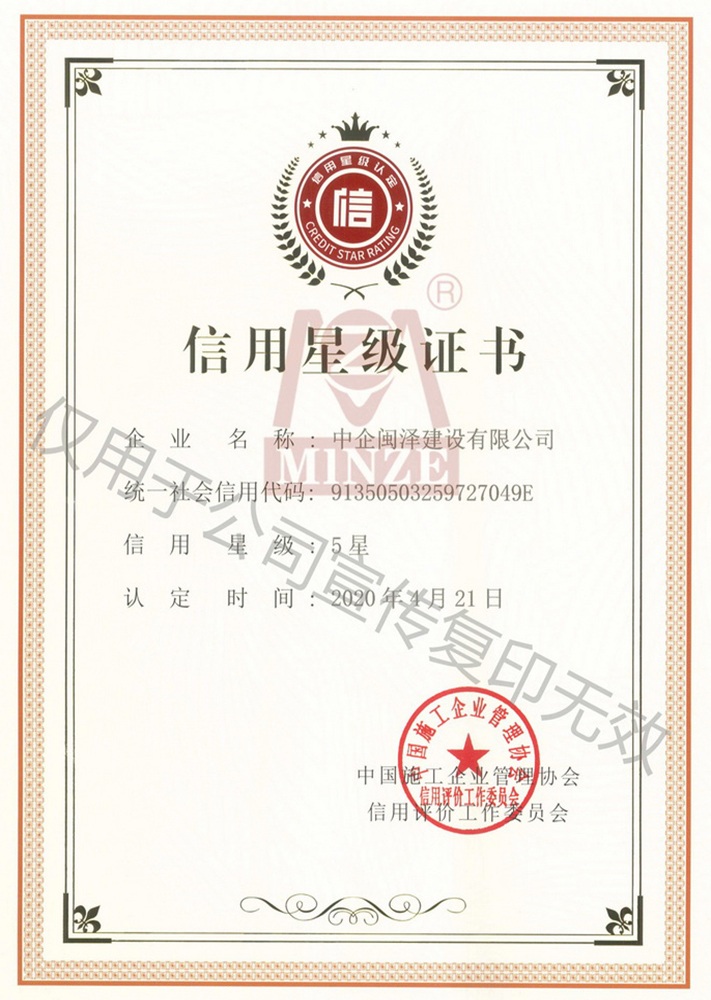 信用星級證書