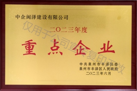 “重點(diǎn)企業(yè)”榮譽(yù)稱號