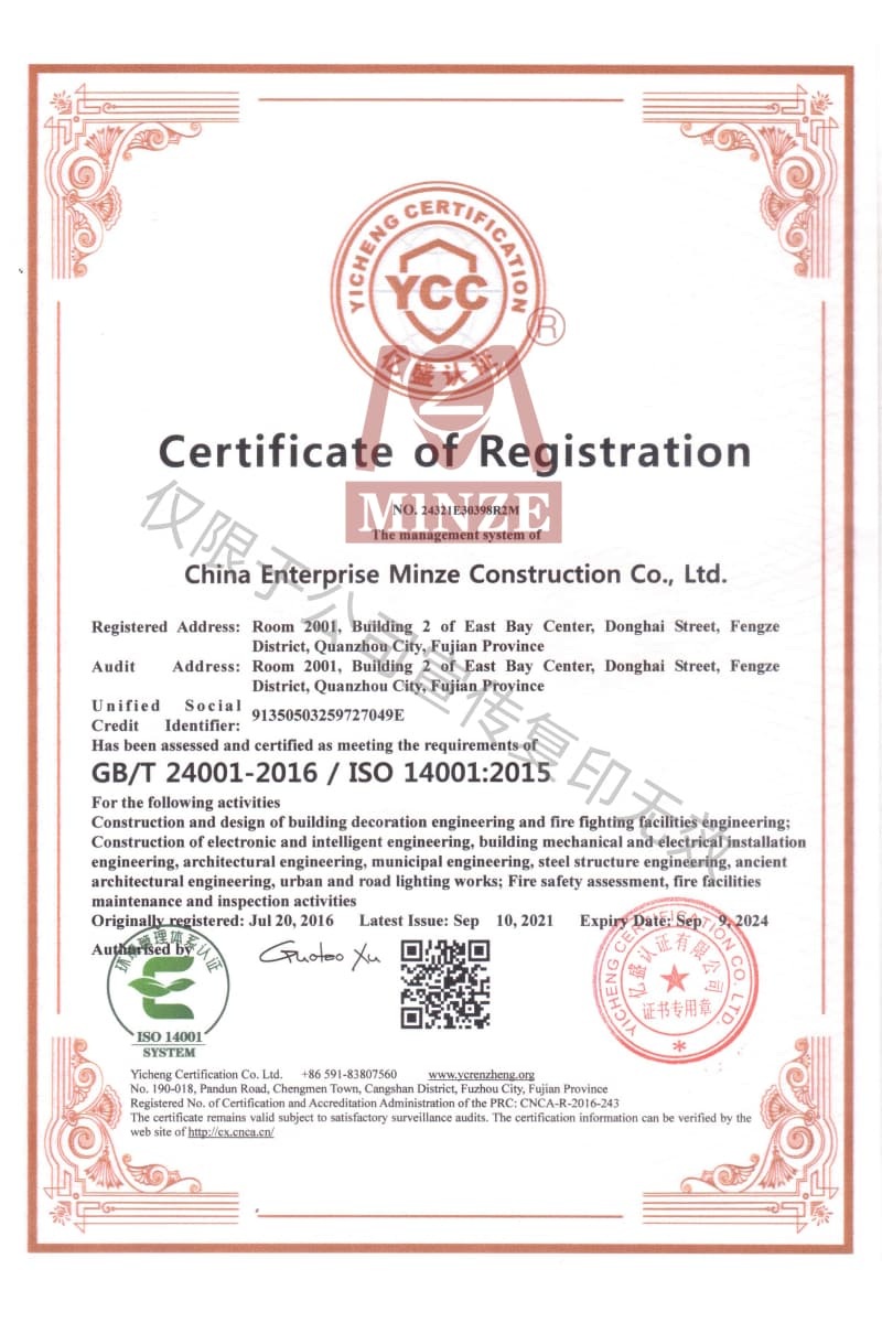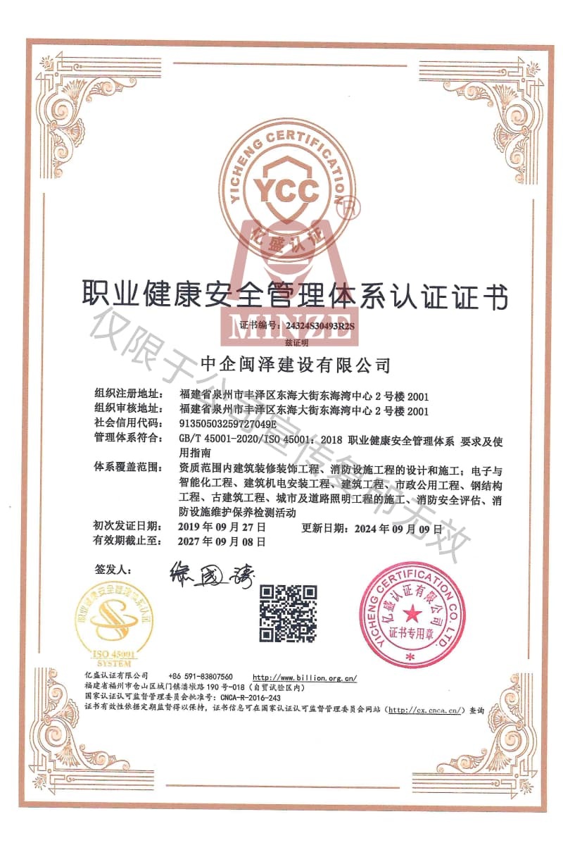 職業(yè)健康安全管理體系認(rèn)證證書(英)